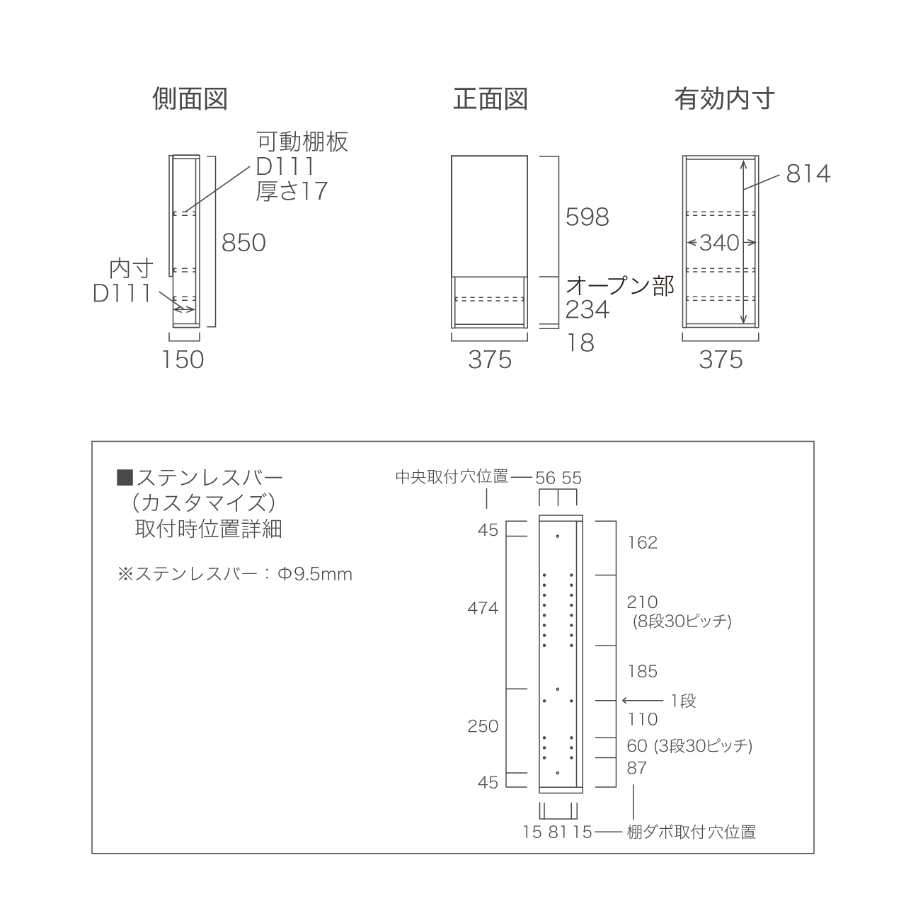 幅37.5cm×奥行15cm×高さ85cm