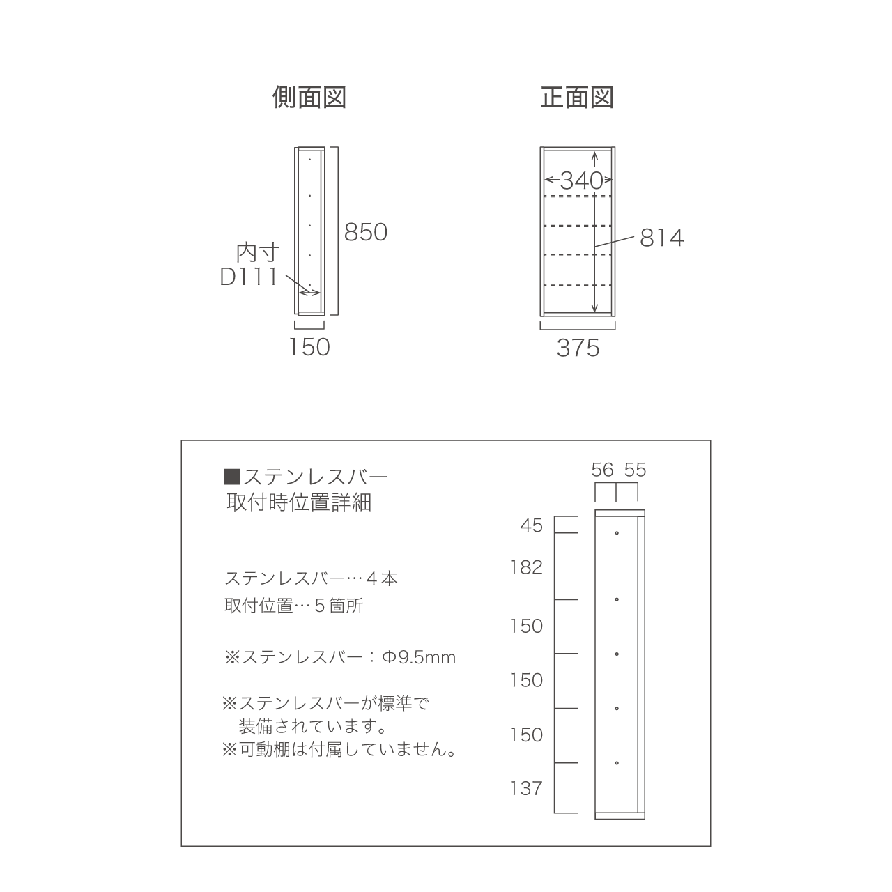 幅37.5cm×奥行15cm×高さ85cm