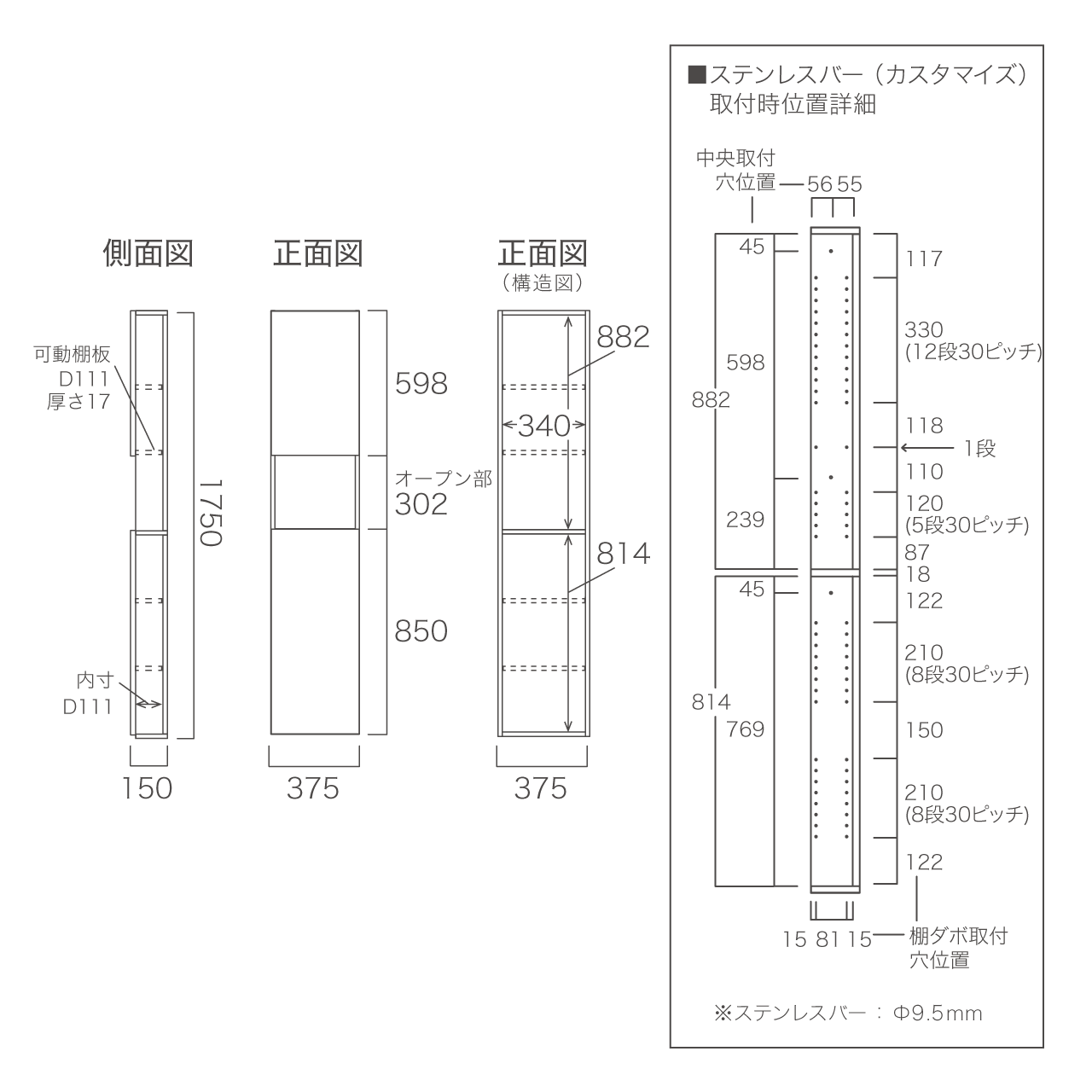 幅37.5cm×奥行15cm×高さ175cm