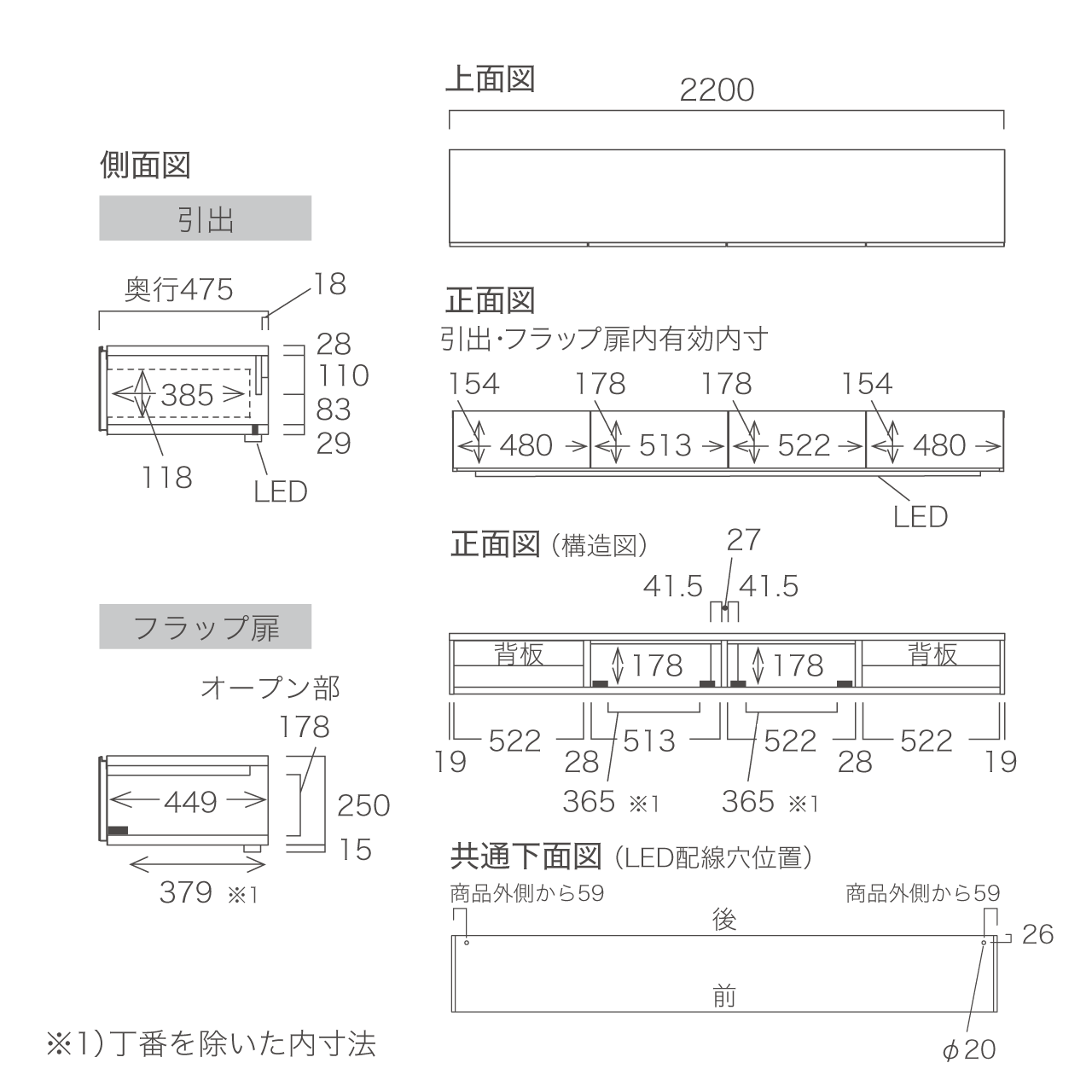 幅220cm×奥行47.5cm×高さ26.5cm(LED照明含む)