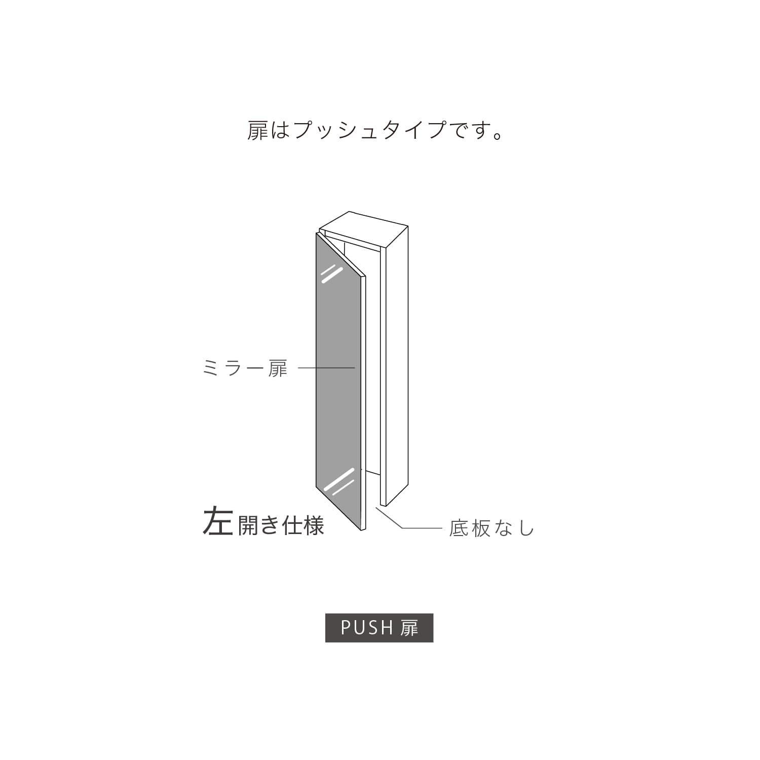 扉はPUSH扉で、ゆっくり閉まるソフトクローズ機能付き。