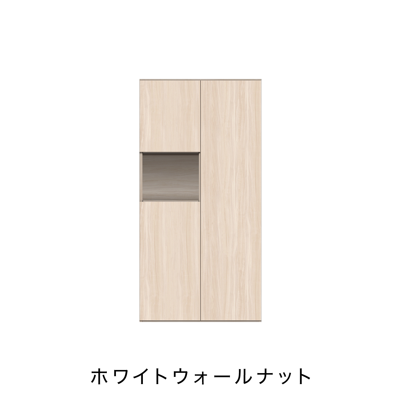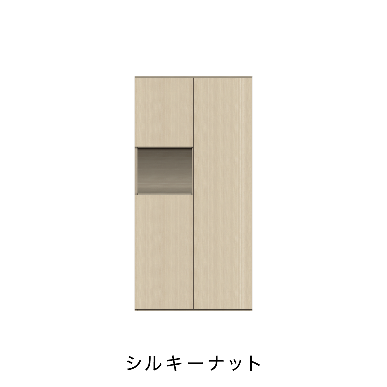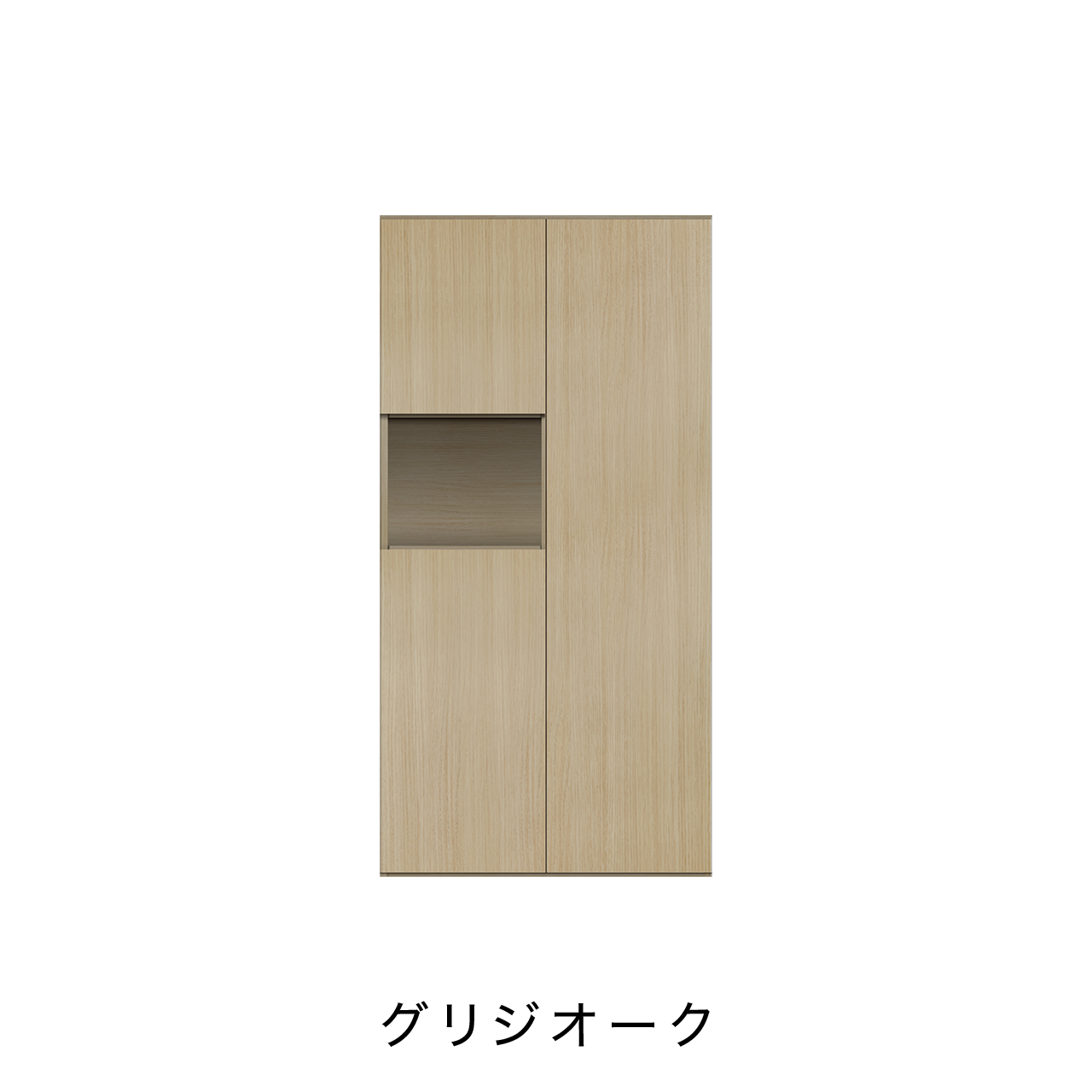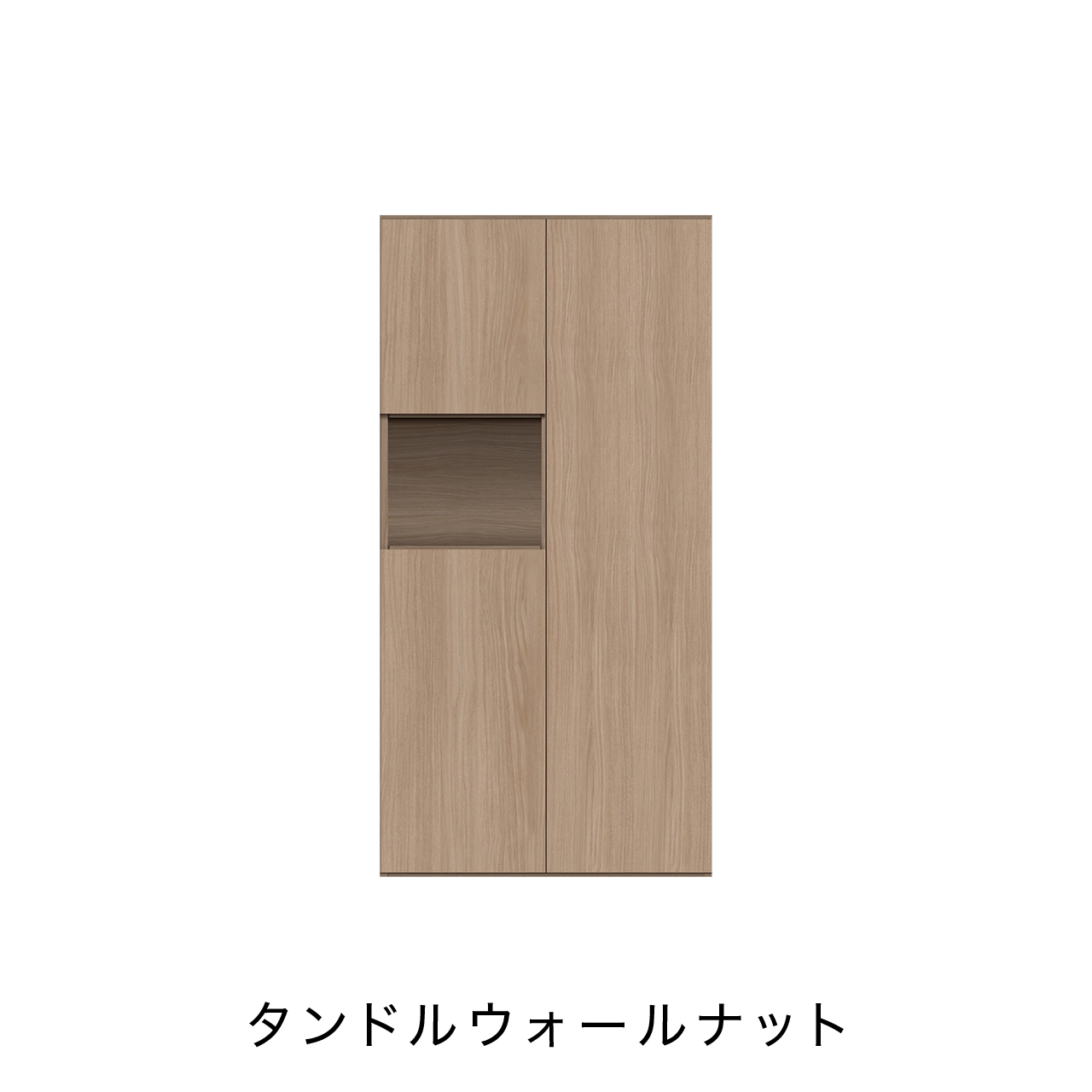 収納力抜群なトールタイプのキャビネットの中央には小物を飾ることができるオープンスペースがあり、インテリアのアクセントになります。鍵置き場としても使用できます。