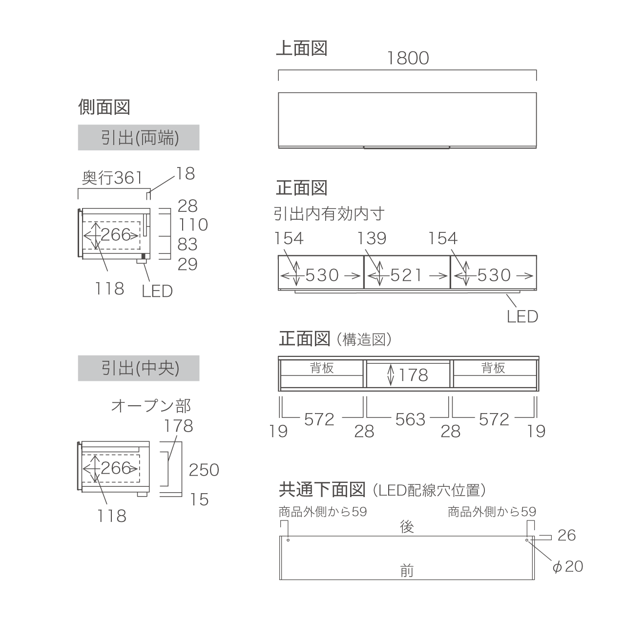 幅180cm×奥行36.1cm×高さ26.5cm(LED照明含む)