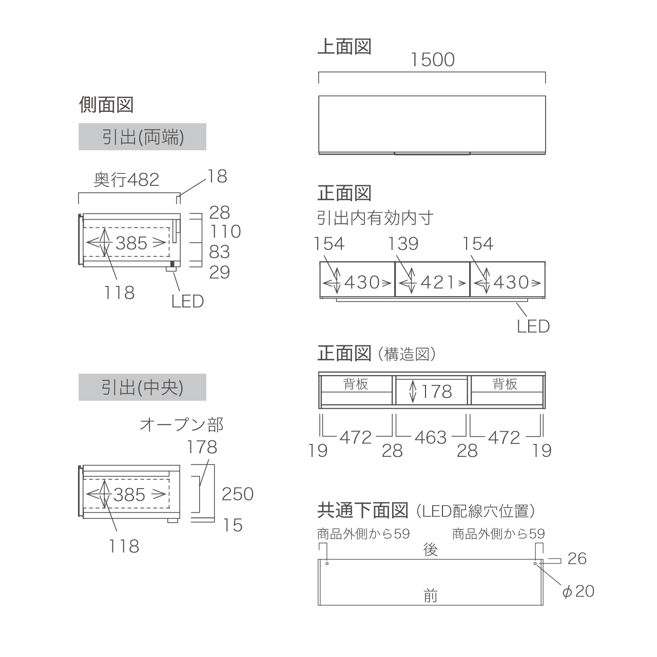 幅150cm×奥行48.2cm×高さ26.5cm(LED照明含む)