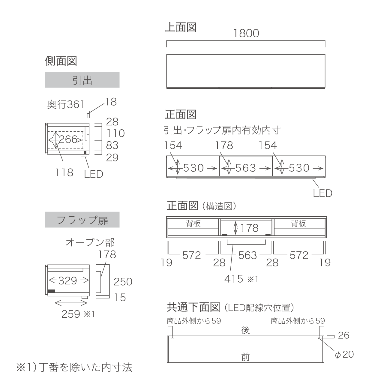 幅180cm×奥行36.1cm×高さ26.5cm(LED照明含む)
