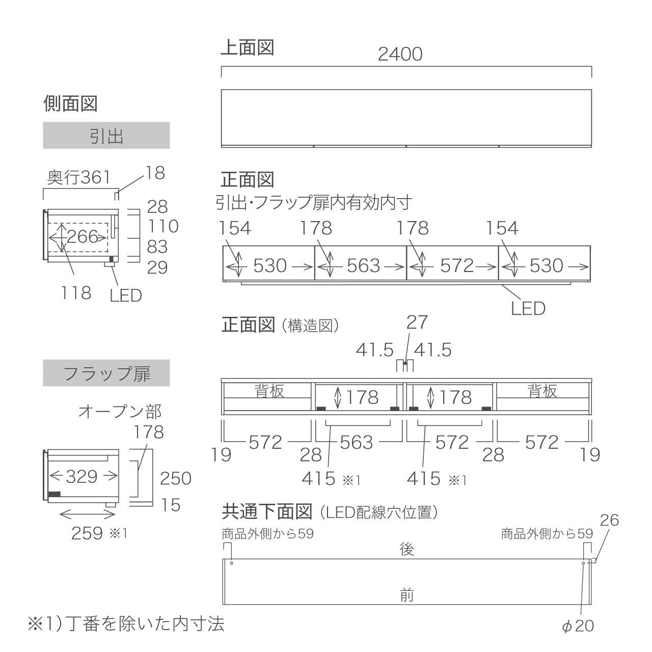 幅240cm×奥行36.1cm×高さ26.5cm(LED照明含む)