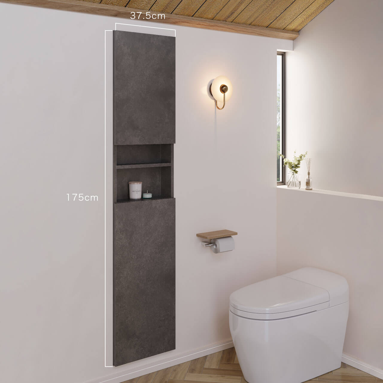 - ニッチ収納 埋込収納棚トイレ収納 幅37.5cm 高さ175cm セラミカネロ色 トールBOX 中央オープンタイプ 左開き MA-NTO370EL9CN